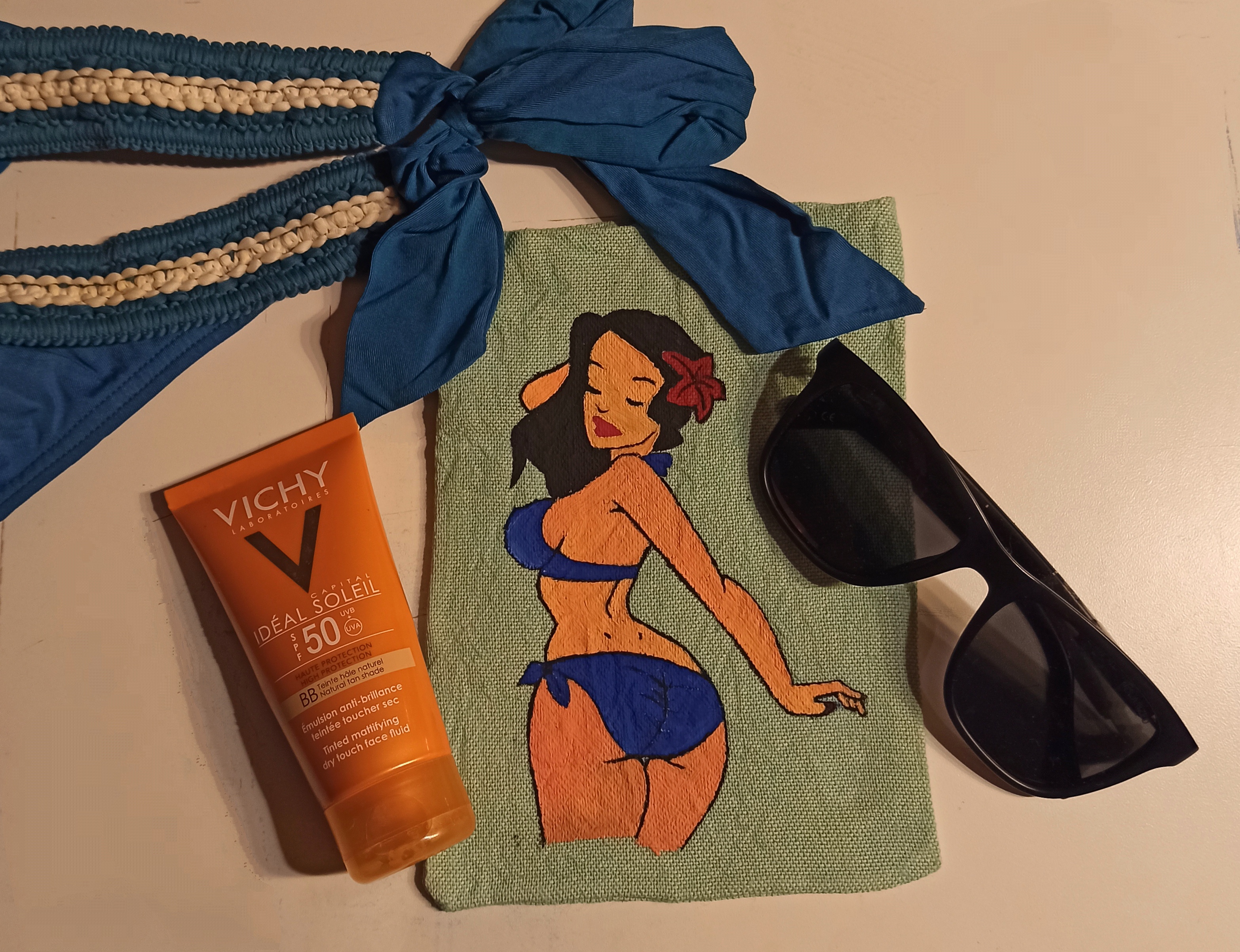 Βeige tote bag with black handles